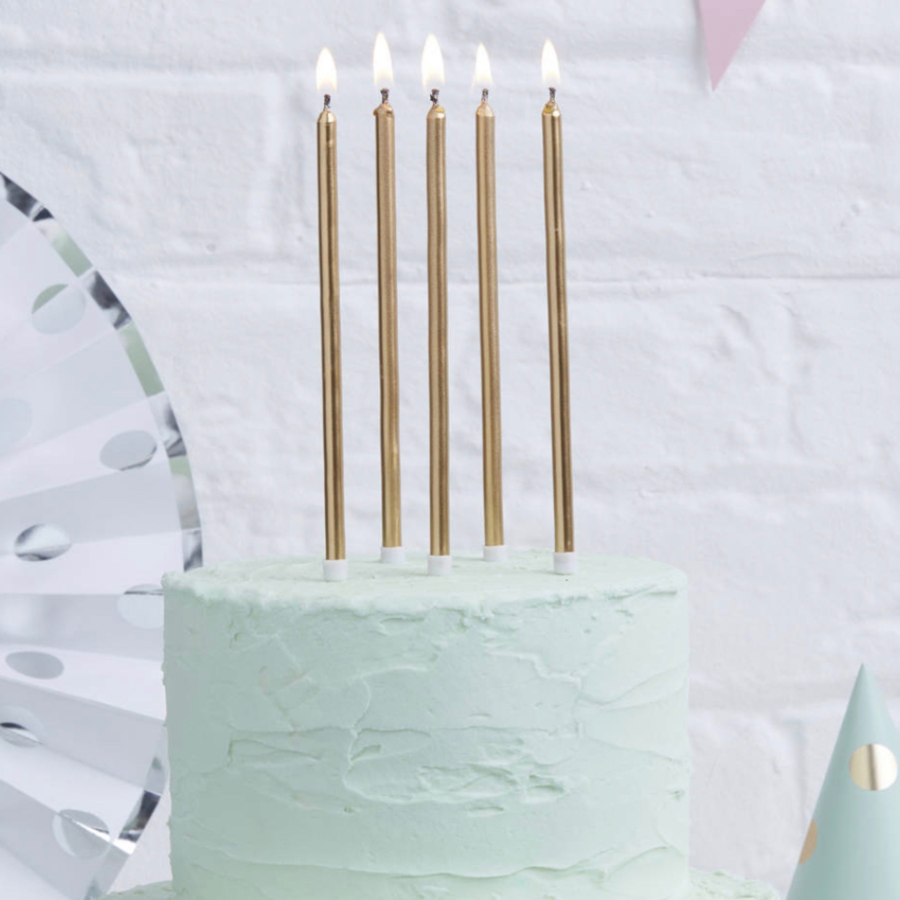 12CM TALL CAKE CANDLES GOLD (PACK OF 12)