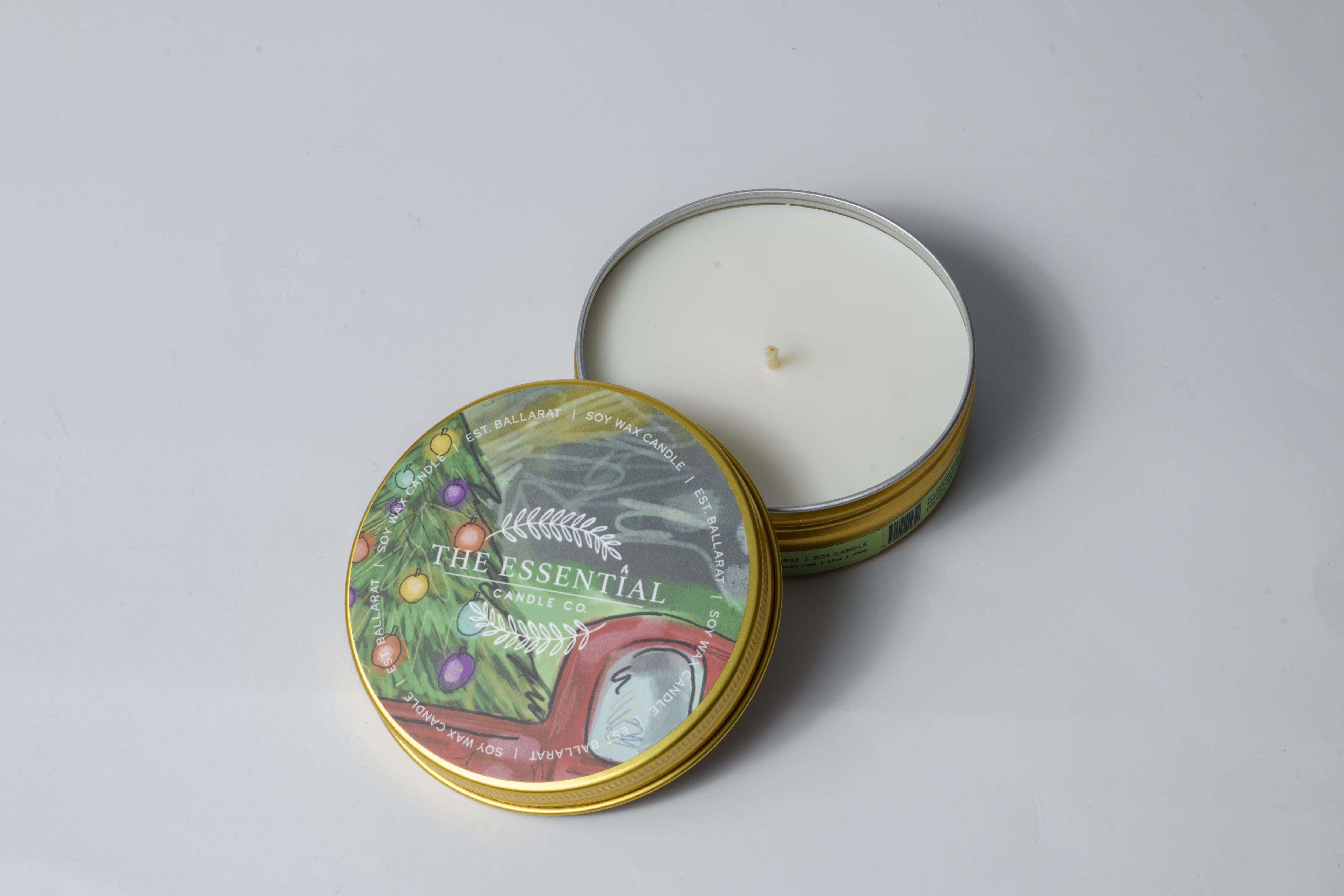 Bring the festive scent of the Australian bush into your home with our hand-poured soy wax candle, housed in a custom gold tin with an approximate 12-hour burn time. Each tin features a Ballarat-inspired design, hand-drawn and customised by a talented local Ballarat artist.
