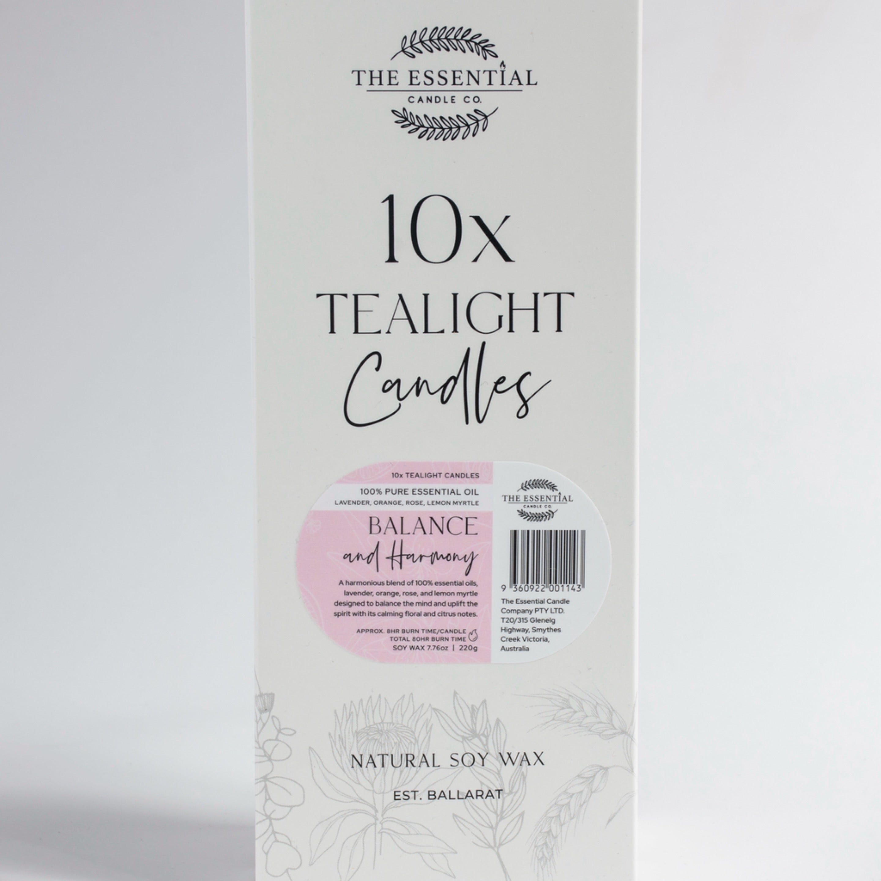 Introducing our Balance and Harmony Scented Tealights, carefully crafted to infuse your space with a symphony of soothing aromas. Blending the calming essence of lavender, the uplifting citrus notes of orange and lemon myrtle, and the delicate floral touch of geranium, these tealights create a harmonious ambiance that promotes tranquility and balance. Whether you're seeking a moment of relaxation or setting the tone for a peaceful meditation, let the gentle flicker of these tealights guide you towards a state of inner harmony and well-being. Indulge in the serene scent of nature's finest botanicals and experience a renewed sense of balance with every glowing flame.